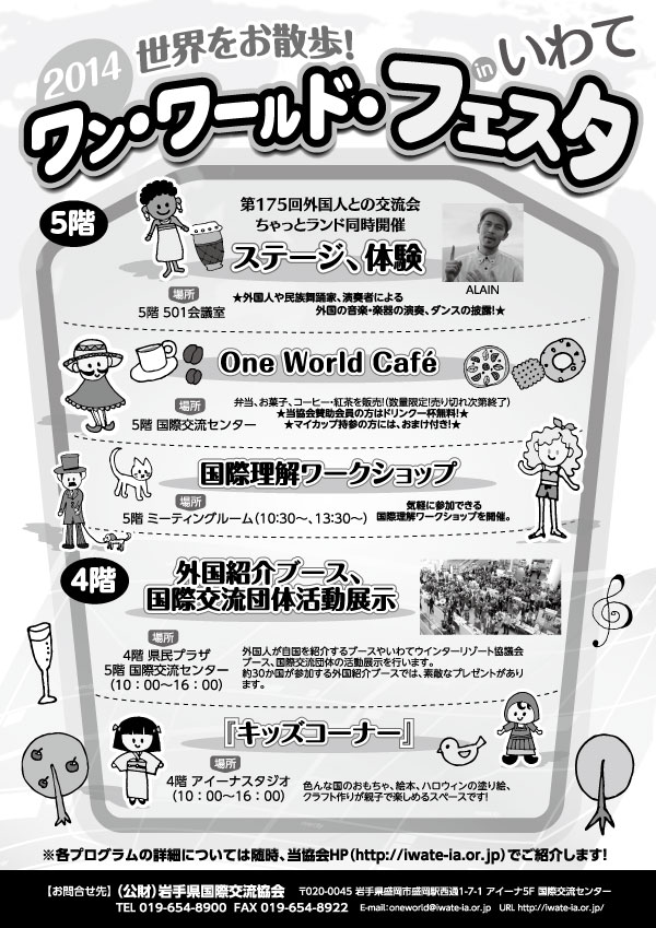 毎年恒例の ワン・ワールド・フェスタinいわて が下記日程で開催されることになりました!